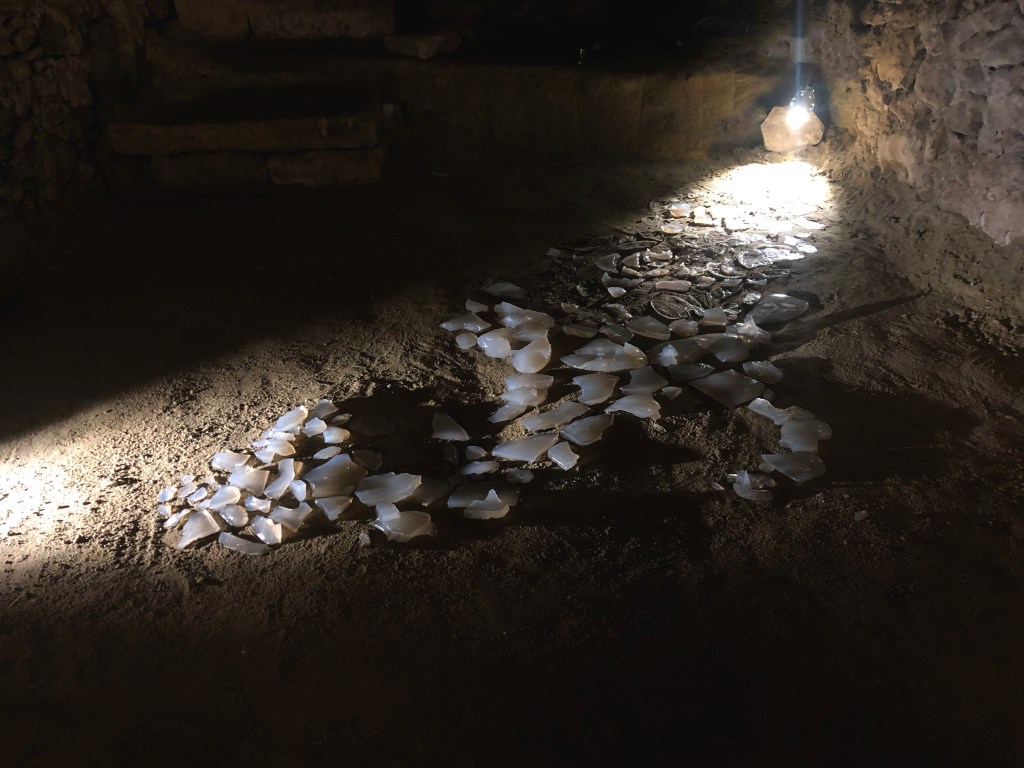 Soucieuse d’inscrire ses œuvres dans un rapport situé et par un procédé d’absorption lente et imperceptible de l’eau par le safre, l’artiste provoque ainsi une double interaction où l’espace transforme les objets et où les formes nourrissent le lieu. L’hygrométrie ambiante confère à l’installation un caractère instable, car elle ne cesse d’évoluer tout au long du temps d’exposition. L’expérience de la visite en devient unique et nous rappelle la course irrémédiable du temps.»