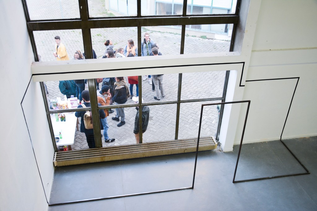 Sortir le dessin d’architecte de son support premier et l’imaginer réel dans un espace public. Espace entre-deux, confusion entre l’espace intérieur et l’espace extérieur. L’observateur devient l’observé et inversement.